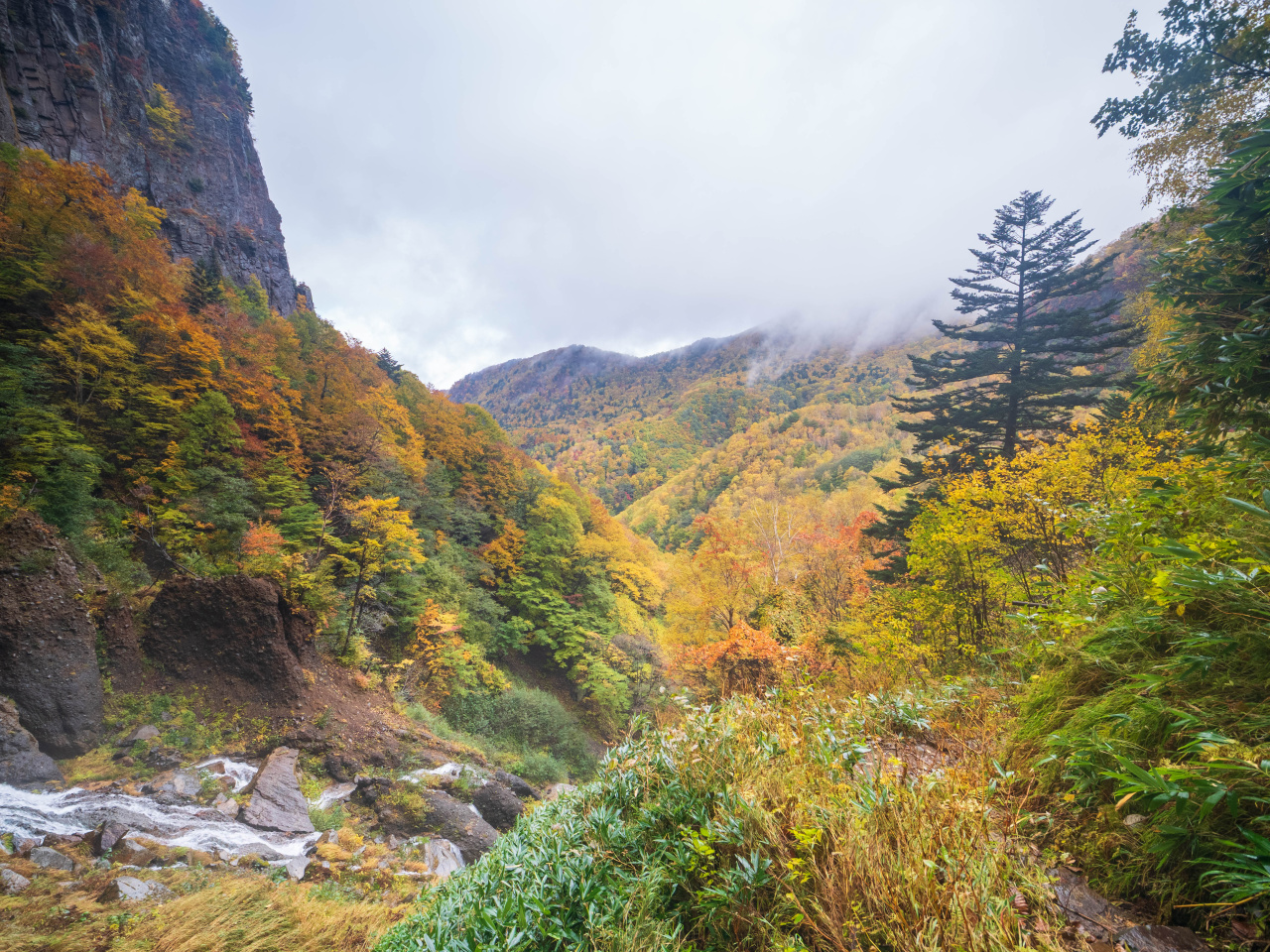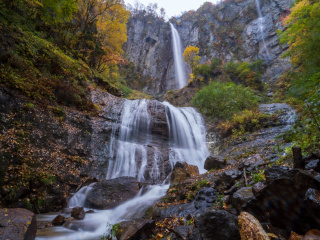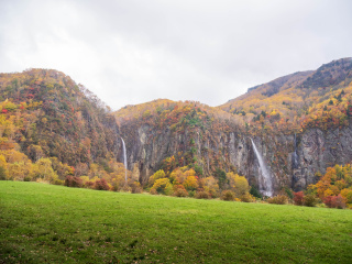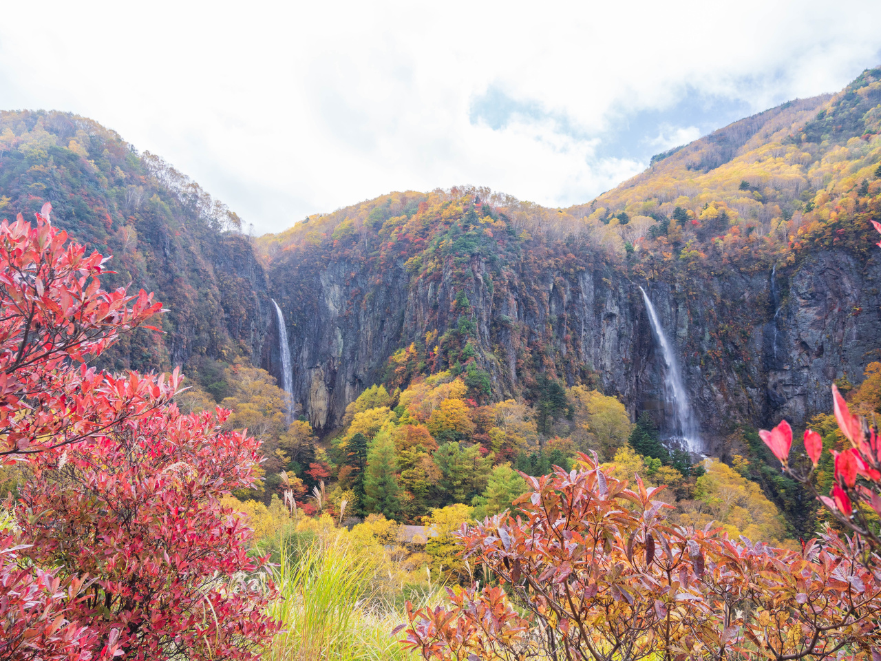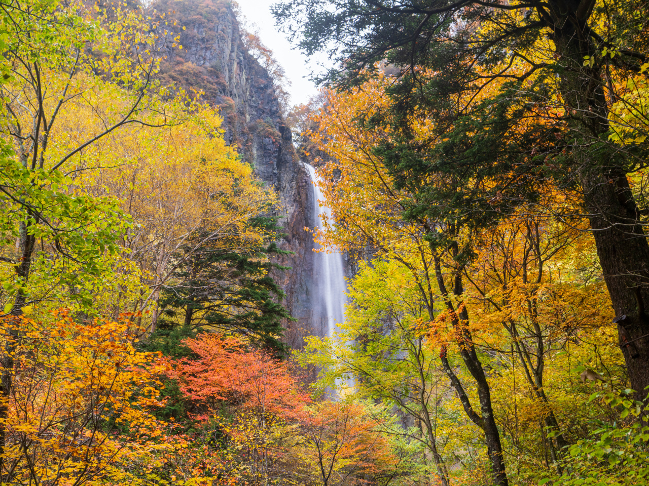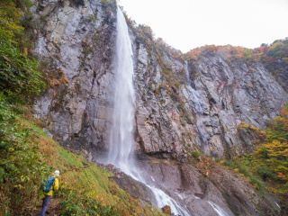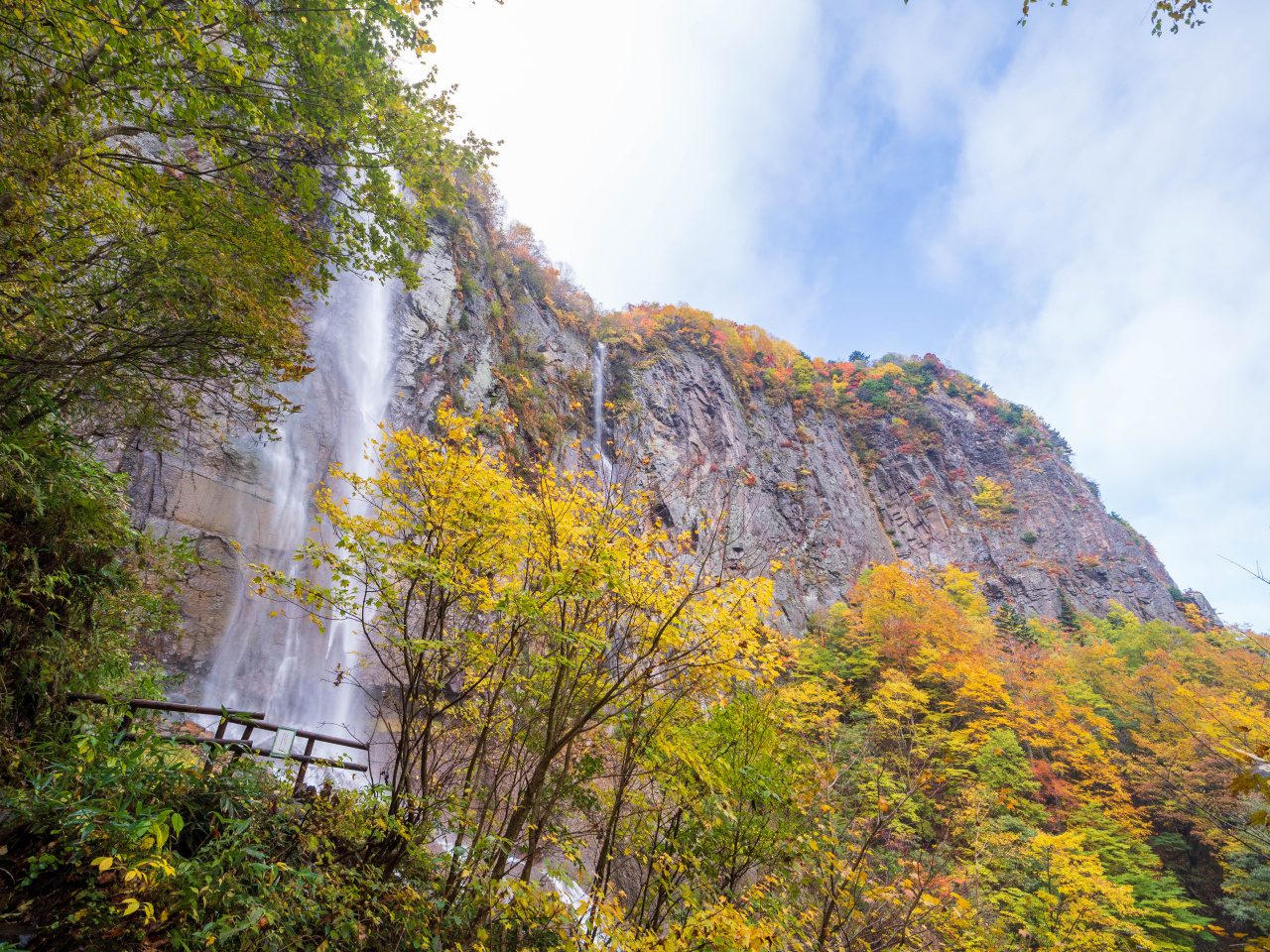 去年はまさかの雨で断念した米子大瀑布、今年は数年ぶりの美しさという米子大瀑布の紅葉を楽しむことができた。