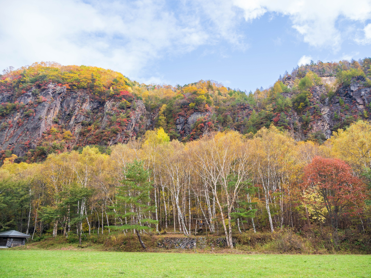 黒斑山の賽の河原にカラマツの紅葉を見に行くつもりでいたがたまたまみーとさんが米子大瀑布の紅葉が数年来の美しさだという記事を見つけて夕方から仕事だし米子大瀑布のほうがのんびりできるだろうということで予定変更。