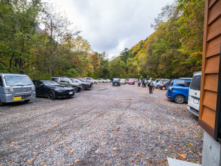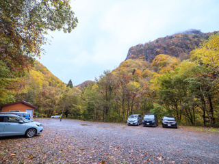 混雑しそうなので朝早めに出発して駐車場へ。朝早かったのでガラガラ。ただついた後から車が次々やってきていた。駐車場にはトイレあり。駐車場手前で一人あたり入山協力金500円を払う。なお紅葉シーズン土日祝は駐車場までシャトルバス利用となる。