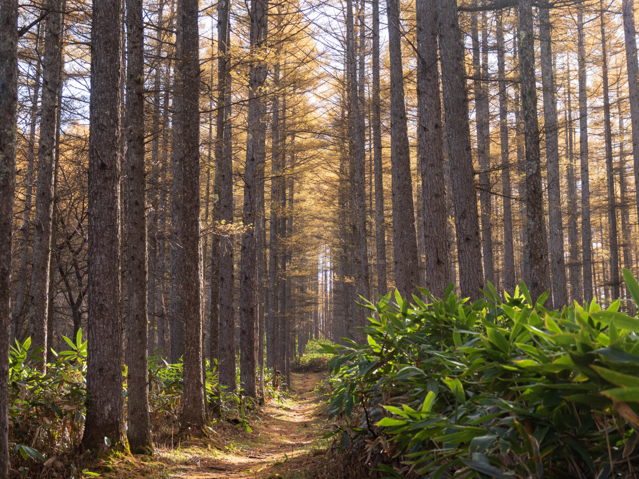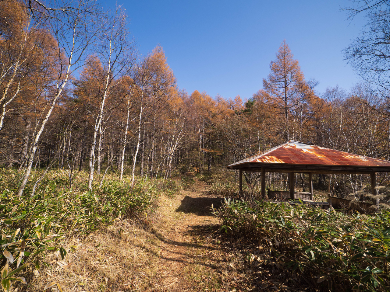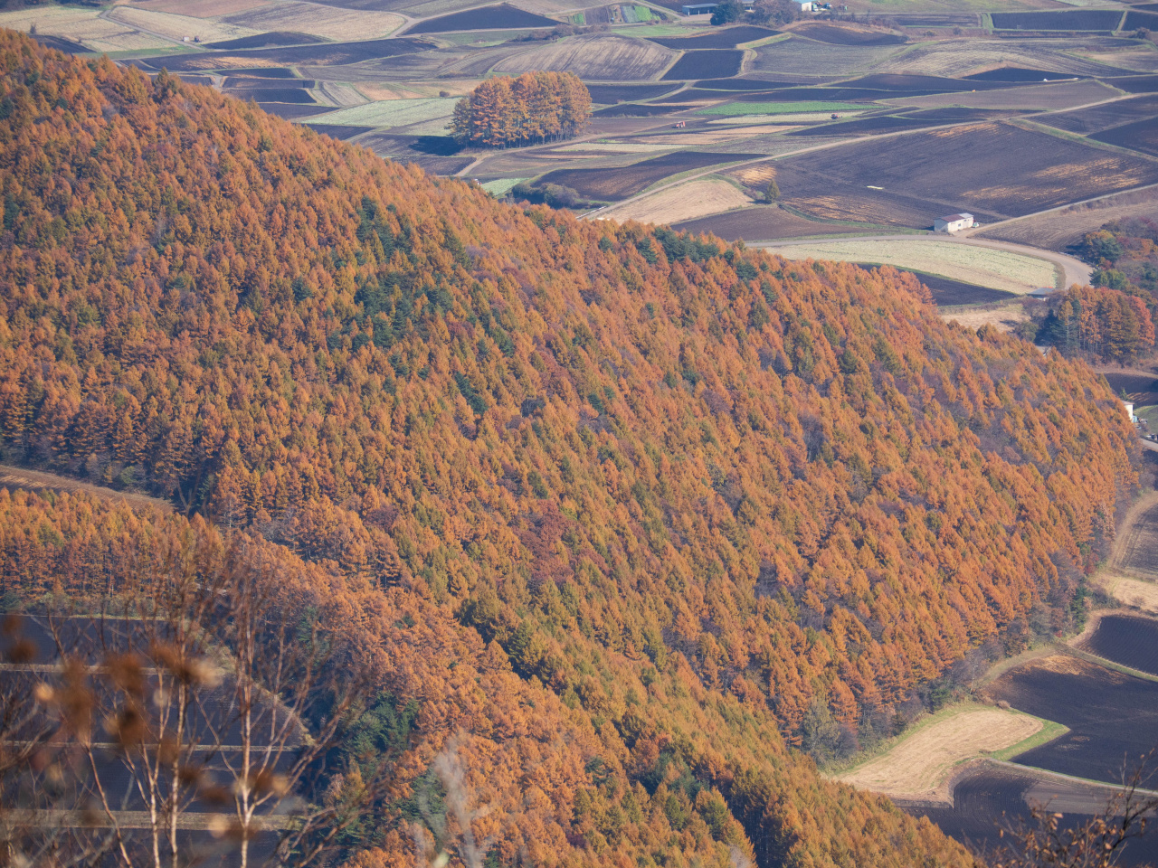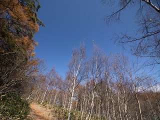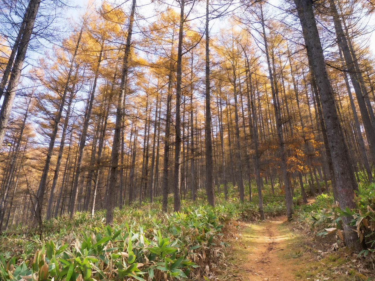 去年カラマツ黄葉真っ盛りの時に歩いて感激した村上山へ。残念ながら今年は4,5日遅かったのか黄葉がさみしい。ただその分青空が見えて登山道が明るくこれはこれでいい感じ。