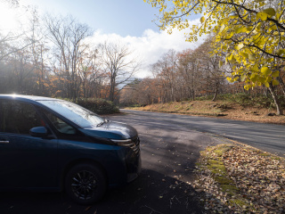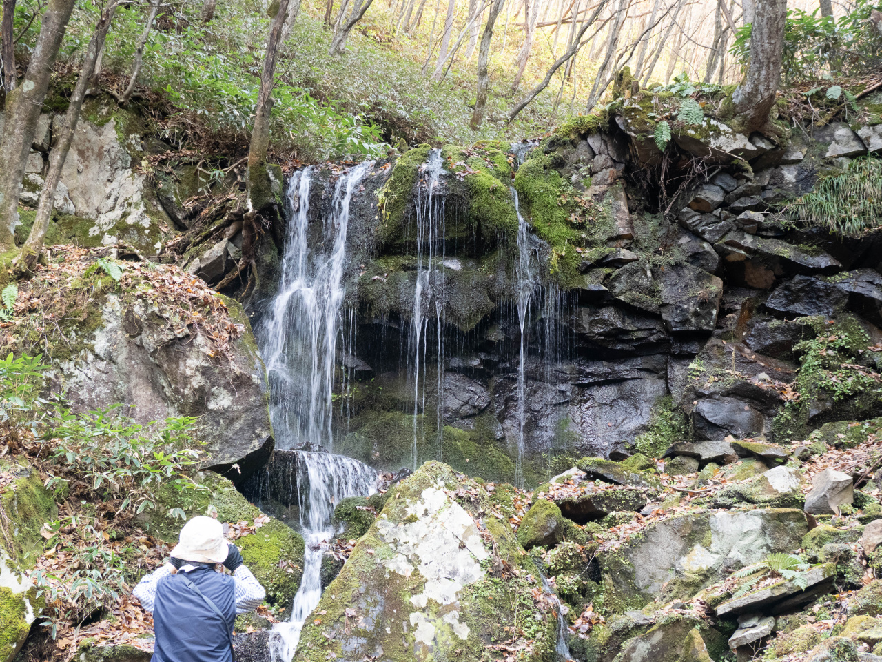 帰りはすぐ近くにあるたまだれの滝を見物して次に愛妻の丘へ。こんなに雄大な景色をみることができるところがあったんだと感激。九重のやまなみハイウェイからの景色みたい。ふもとはカラマツ黄葉真っ只中で見事だった。