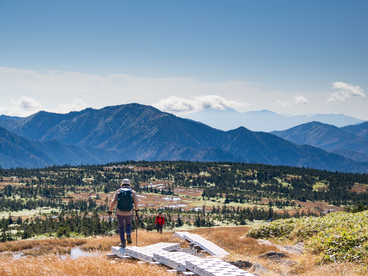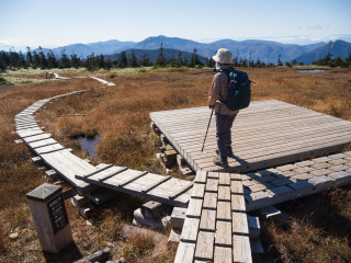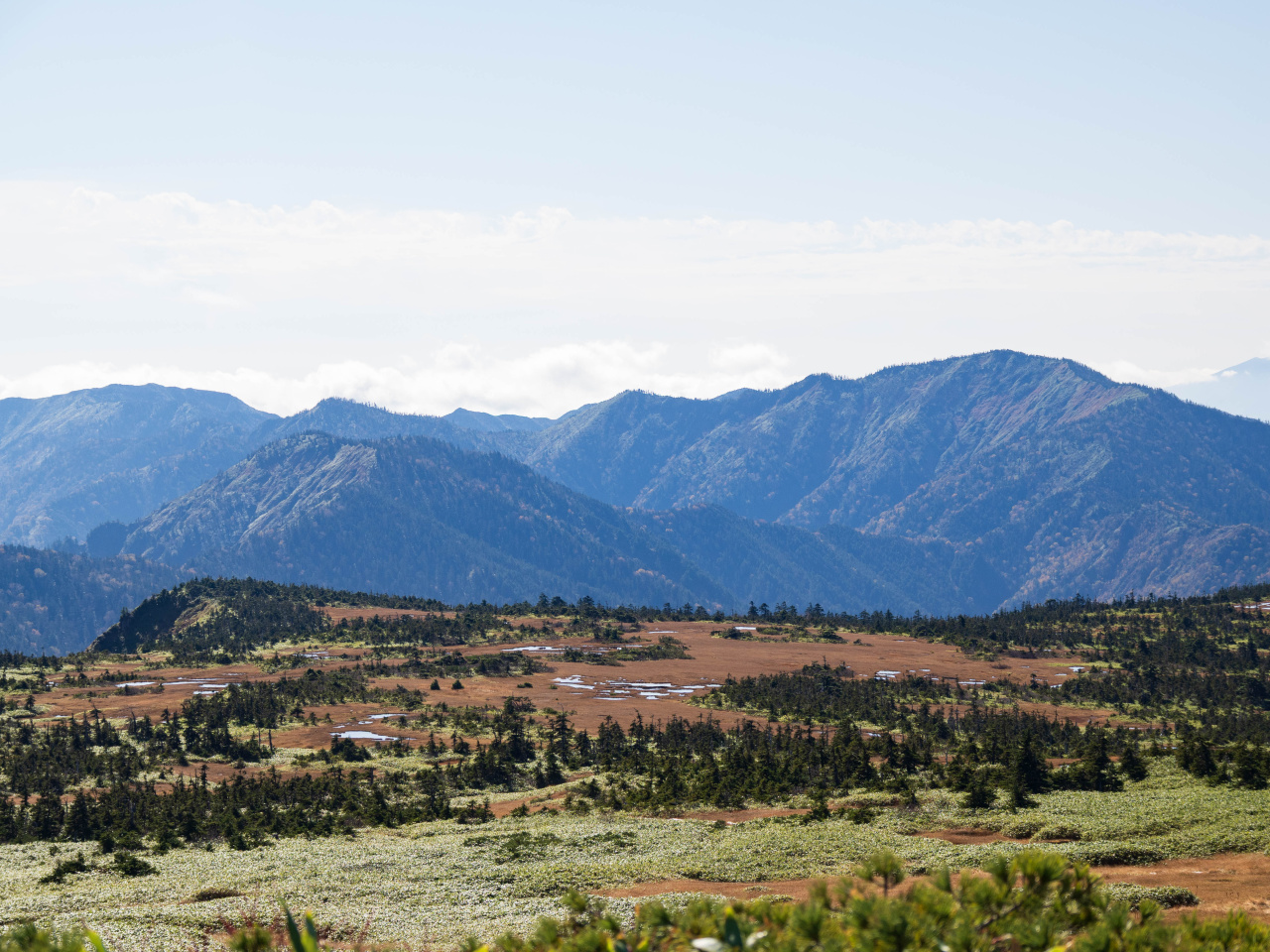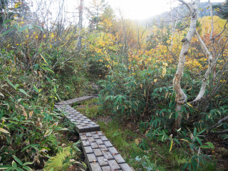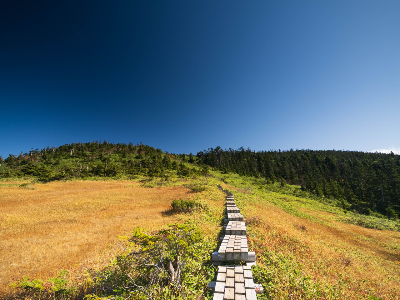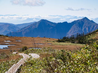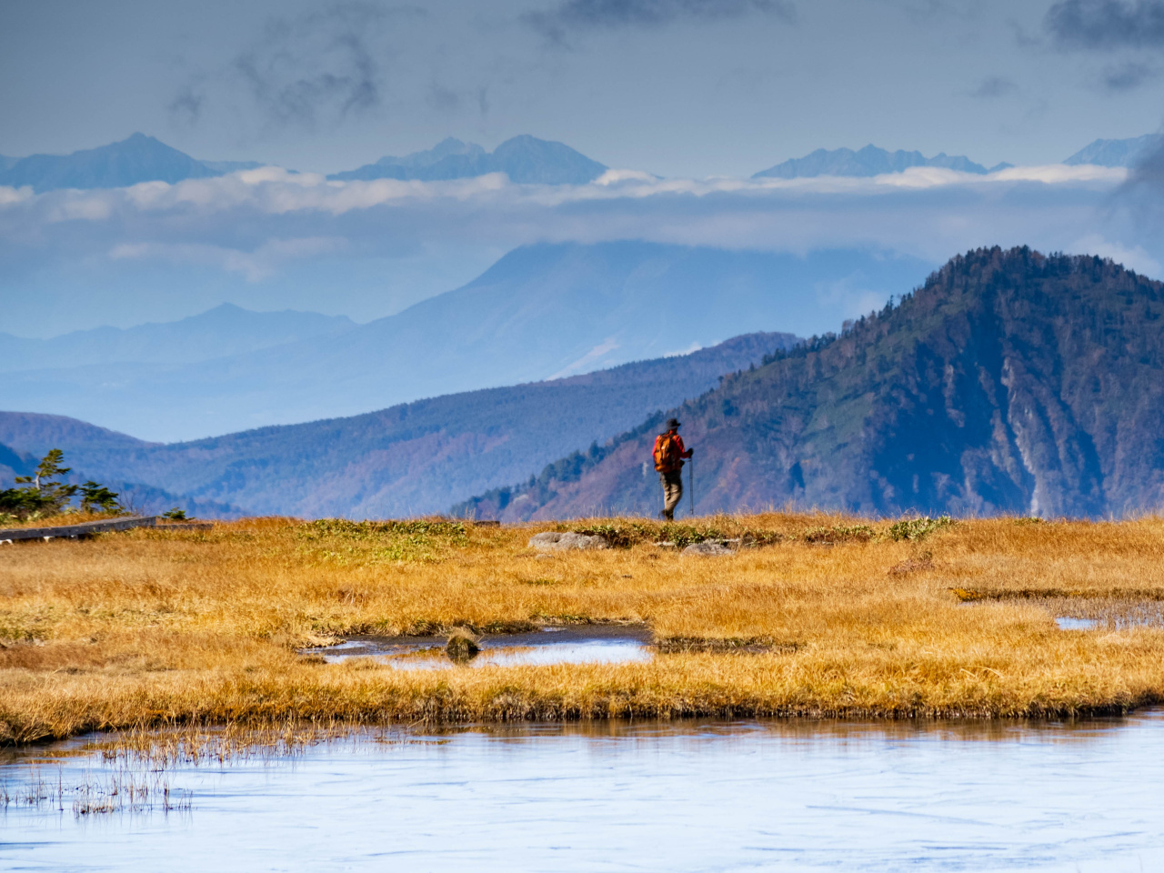 湿原に付けられた木道を進んでいく。雄大で気を付けないと時が過ぎるのを忘れて制止してしまいそうになる。湿原帯がおわり泥んこ帯へ。次は岩ゴロゴロ帯。そこを過ぎると再び湿原の中の木道へ。