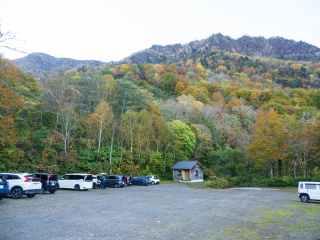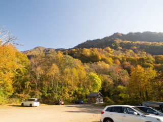 3時起床でバタバタと準備をして4時に出発して上信越自動車道で豊田飯山インターへ。ここから下道で津南町で国道405号へ。津南町秋成にて通行止めで迂回路経由で栄村堺へ。ここから舗装林道で6時半小赤沢コース登山口駐車場に着いた。道は少し狭いけれど待避帯あり駐車場は広くトイレもあり。ここまで登山者らしい車に全く合わなかったので一台もとまってないのでは?と思ったけど結構車が停まっている。