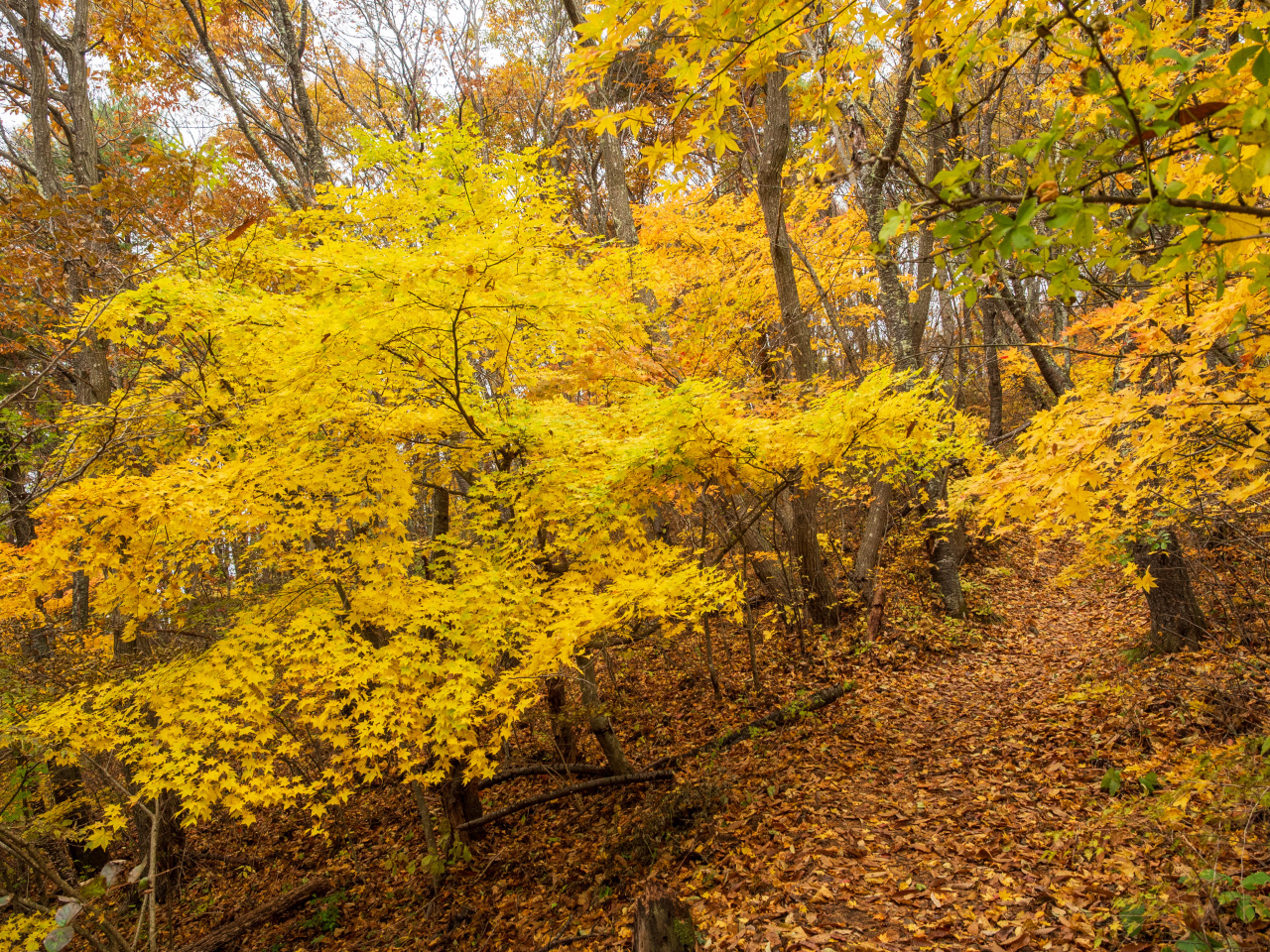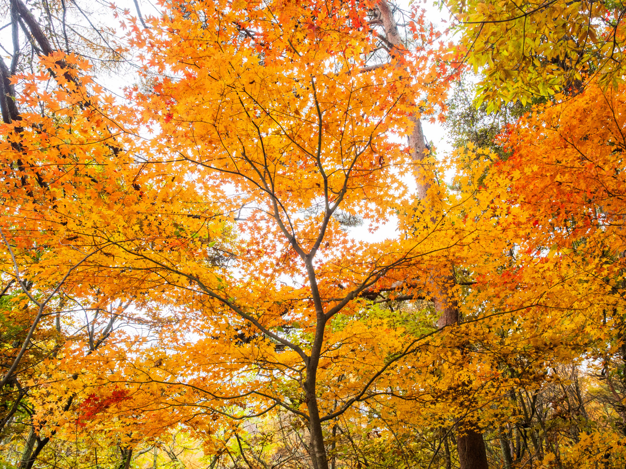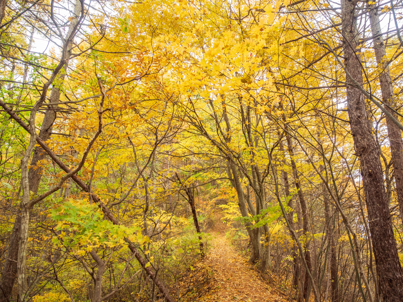登り始めから紅葉(黄葉)オンパレードできれい。感激でなかなか足が進まない。男性が下りてきた。masaさんだ。2太郎してこれから東山&愛宕山へいかれるとのこと。パワフルだ。
