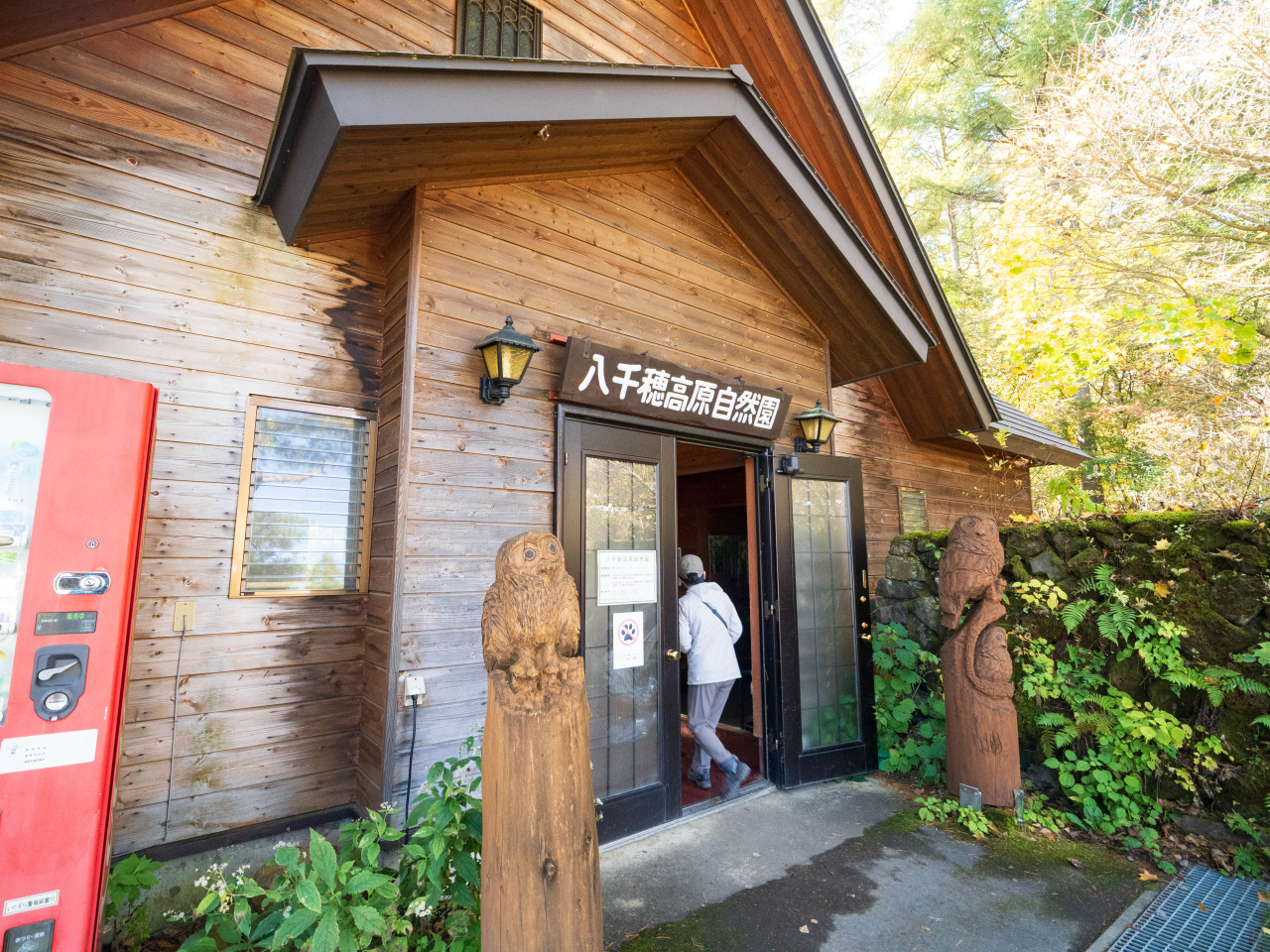日本一の白樺群生地があるという八千穂高原へ。八千穂高原自然園前の駐車場に車を止めて入園料300円を払って入園。