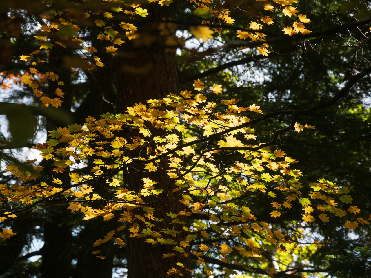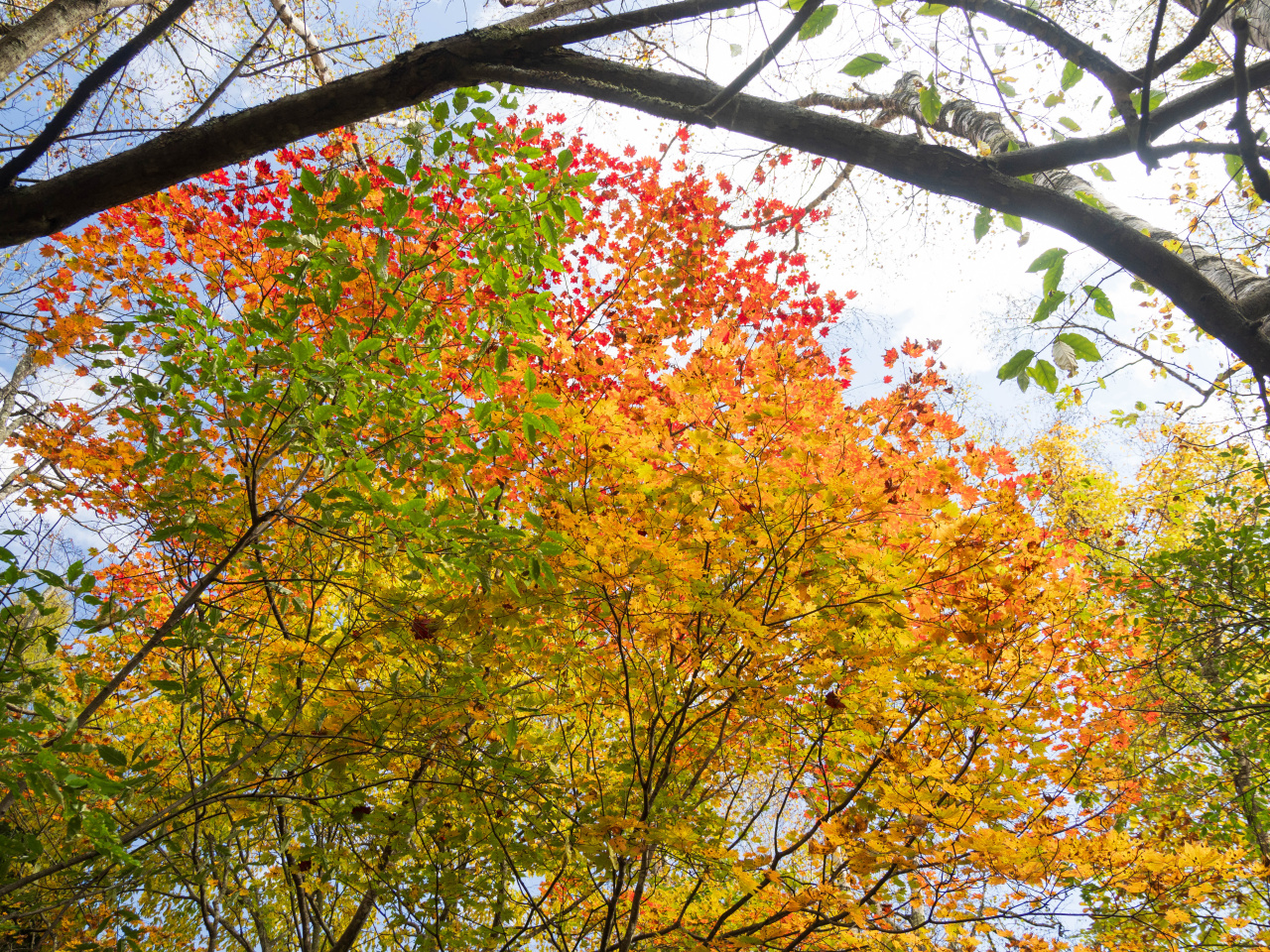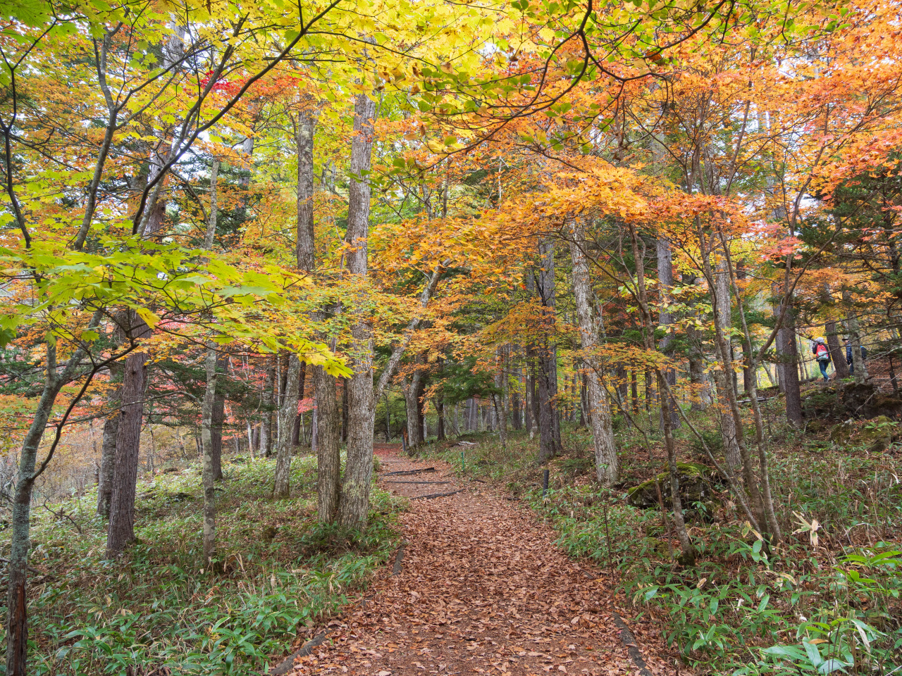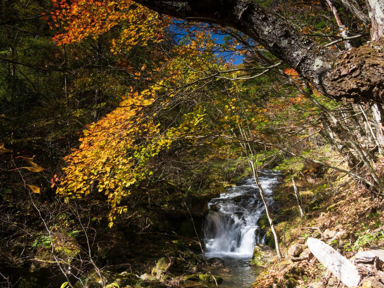 天気は晴。まだ紅葉には早いかなあと思いつつ来てみたけどまだまだ早くて白樺もカラマツも紅葉してない。紅葉している木を探して写真をとったり眺めたり。緑の小径コースを左回りで、遊亀湖の先で雨が降ってきた。晴れていたのになぜ?