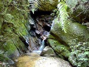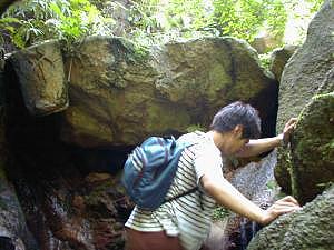 その上はふたたび大岩のゴロゴロした所となる。ミニ滝をすぎると左手に