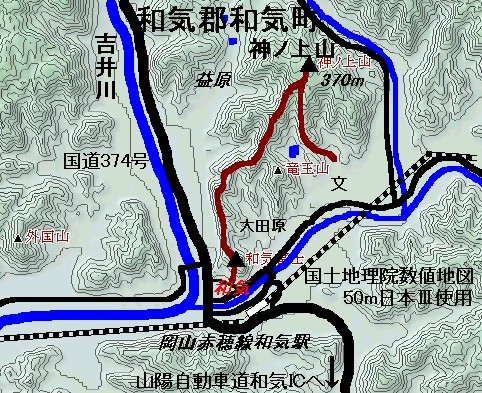 神ノ上山頂上/神ノ上山頂上-65分-和気中学校-30分-車デポ地点